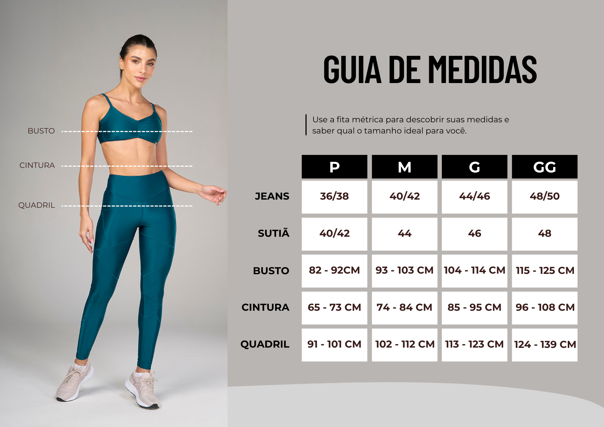A modelo tem 1,74m e veste P.