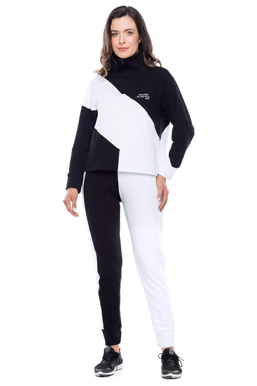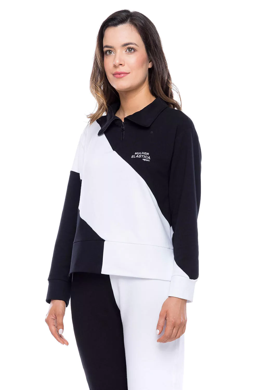 Blusa Duo Ton - Confeccionado em moletinho e algodão proporcionando alongamento e caimento, dando total conforto. Blusa manga loga, com gola alta e ribada. Zíper na gola e recorte diagonal. Modelagem solta ao corpo, comprimento mais curto e punho em ribana. Barra larga e dupla co abertura lateral.