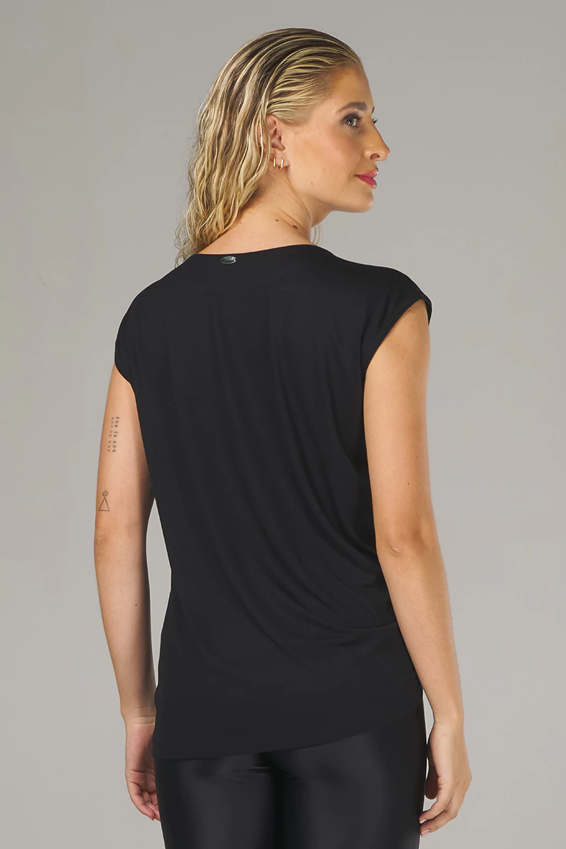 A Camiseta Drapê é daquelas peças que se moldam à sua vida. Com modelagem ampla, decote arredondado e um caimento leve, ela desliza no corpo com suavidade. O toque macio da viscose com elastano garante conforto o dia todo, mesmo nos dias mais cheios.
