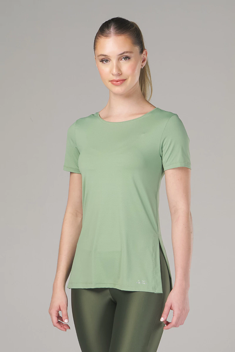 Seu tecido absorve rapidamente o suor, proporcionando uma sensação de frescor prolongado durante os exercícios. O design moderno com gola arredondada e modelagem que valoriza a cintura combina conforto com estilo, permitindo que você se sinta bem tanto durante a prática esportiva quanto no seu dia a dia.