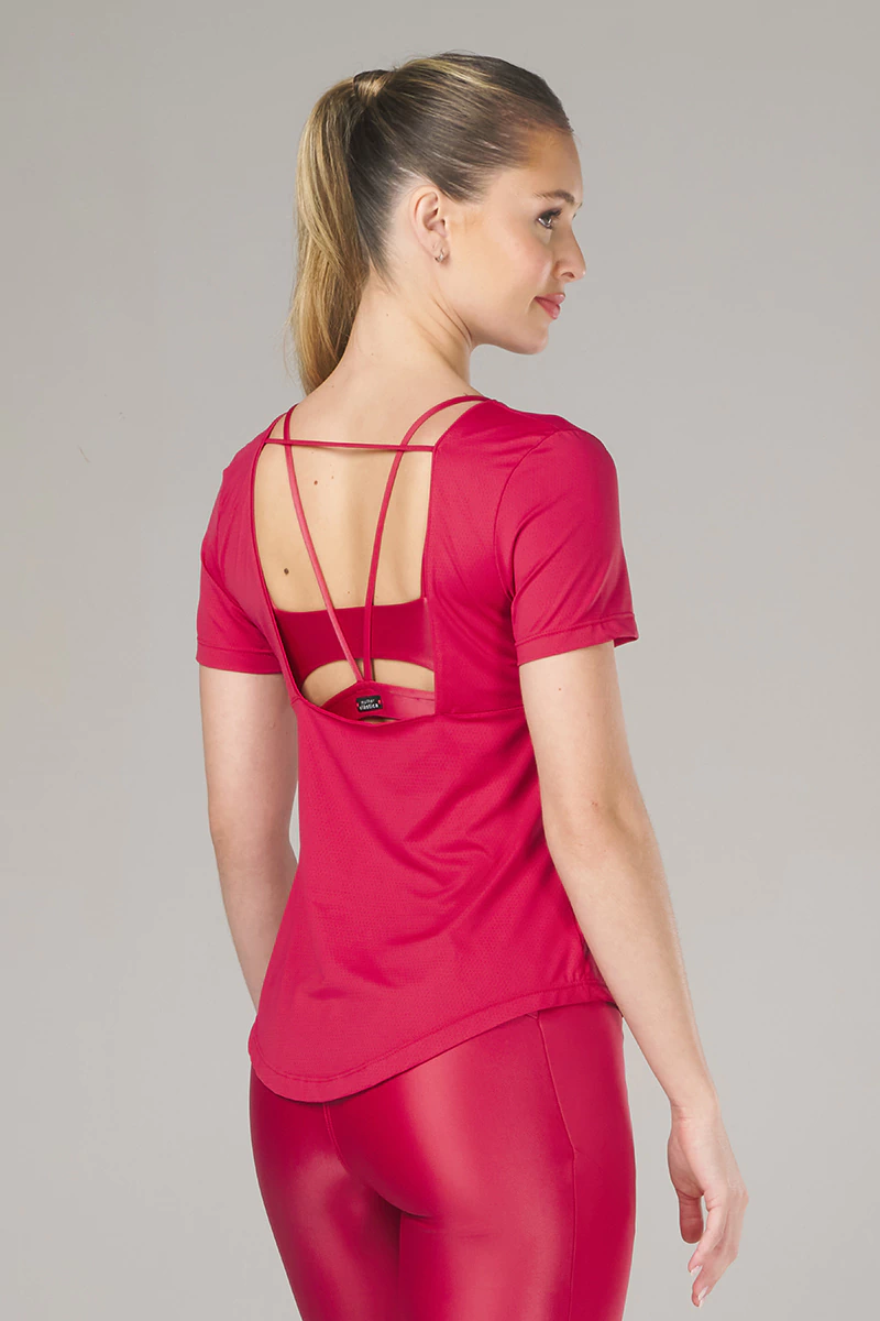 Com modelagem acinturada e um toque de feminilidade, ela valoriza o corpo sem apertar. A gola arredondada e as mangas curtas trazem leveza, enquanto o recorte vazado nas costas garante ventilação e charme — sem abrir mão da funcionalidade. O roletê entre os ombros mantém tudo no lugar, mesmo nos movimentos mais intensos, para que você se sinta livre e segura o tempo todo.