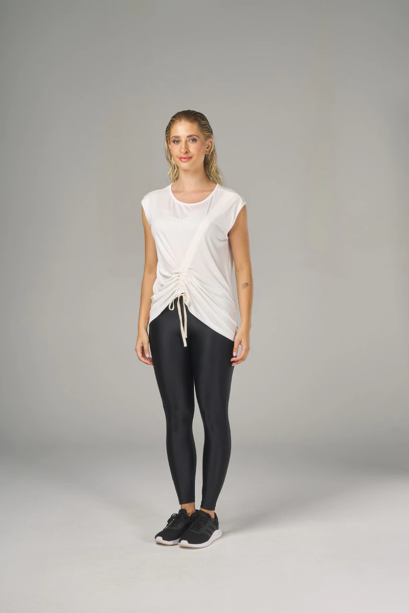 O detalhe que faz a diferença? O cordão ajustável na barra, que permite personalizar o look do seu jeito: mais curtinha e moderna, ou mais comprida e elegante. Ela se transforma com você — seja qual for o plano do dia.