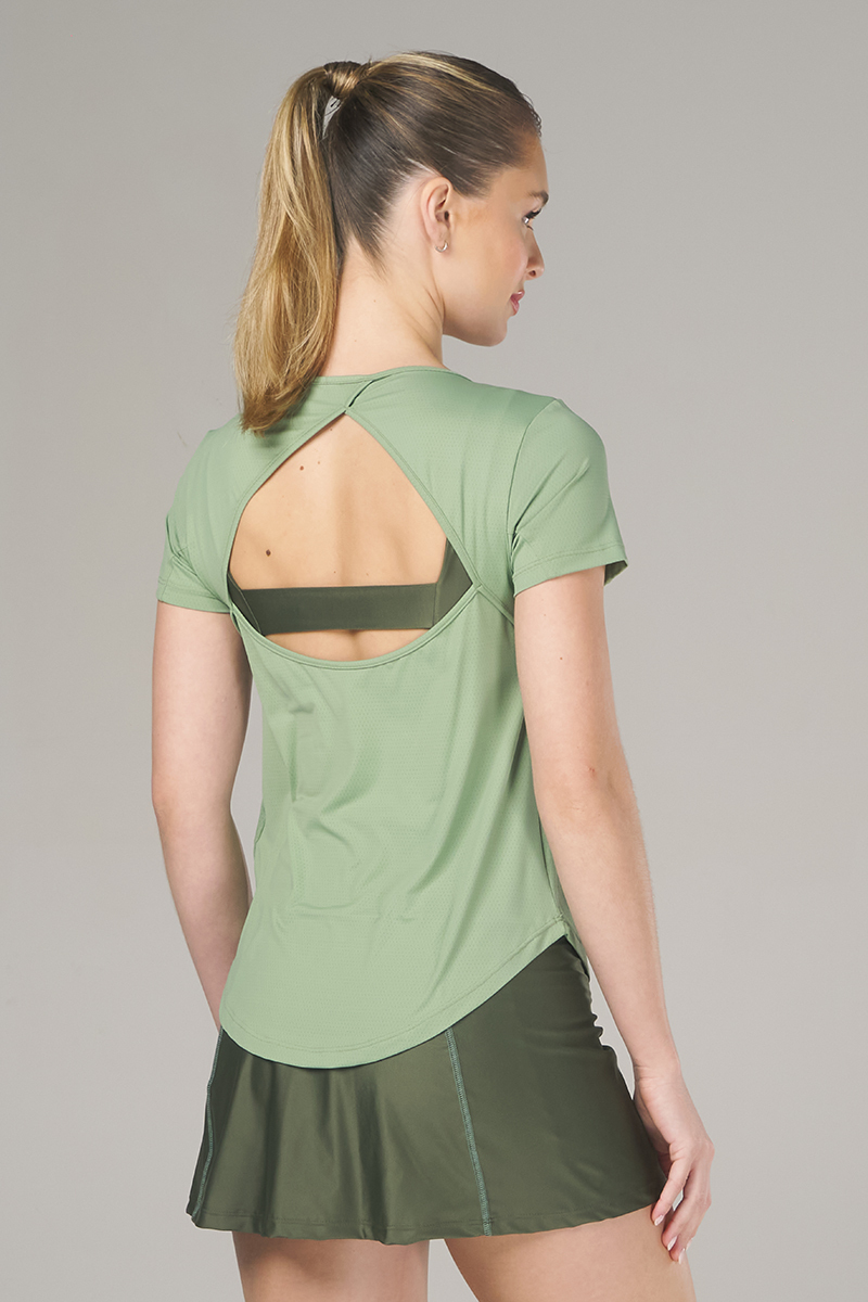 Completando o kit, a Camiseta Run Compression traz leveza e sofisticação para sua rotina ativa. Sua modelagem acinturada com mangas curtas e decote arredondado valoriza a silhueta sem limitar os movimentos. O detalhe em recorte em U invertido na parte frontal realça o busto com elegância, enquanto o recorte triangular vazado nas costas proporciona ventilação estratégica — ideal para os treinos mais intensos.