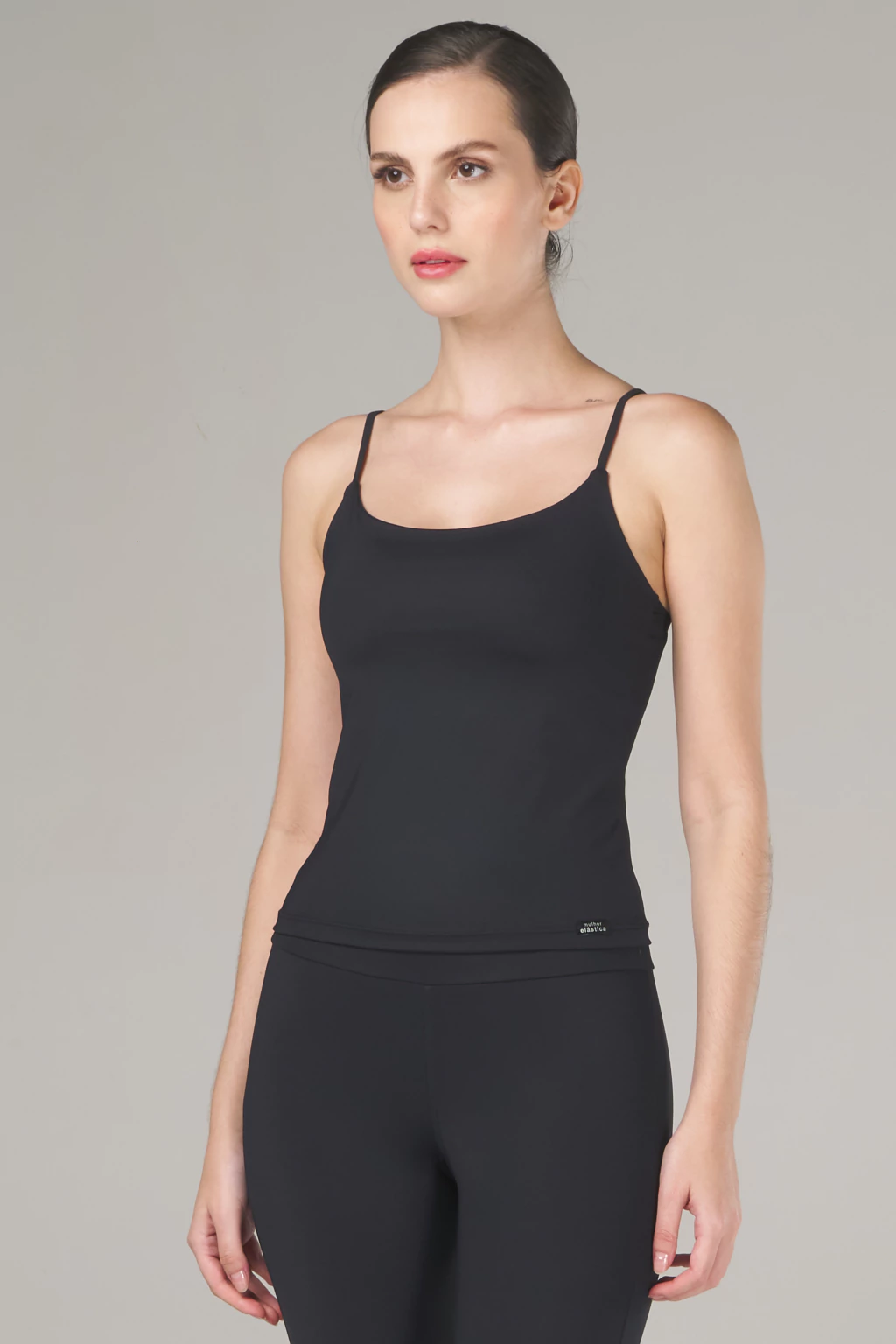 As alças finas, o decote discreto e as costas retas garantem um caimento perfeito no corpo, trazendo elegância e versatilidade em uma peça básica que está longe de ser comum.