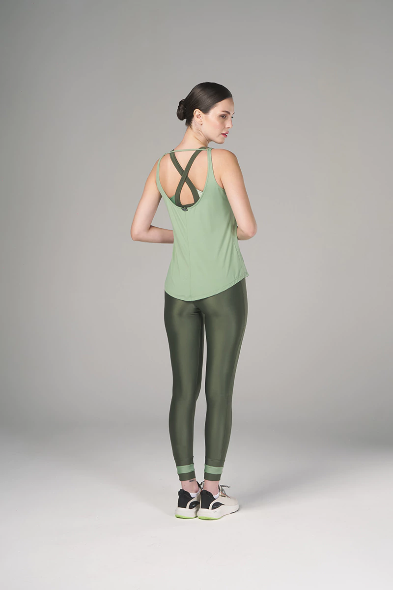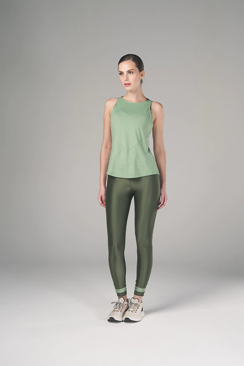Com decote arredondado na frente e costas em U profundo, ela traz frescor e mobilidade na medida certa — o roletê de segurança garante firmeza sem tirar o conforto. Os recortes em V alongam a silhueta e criam aquele efeito visual que a gente ama: mais leveza, mais confiança.