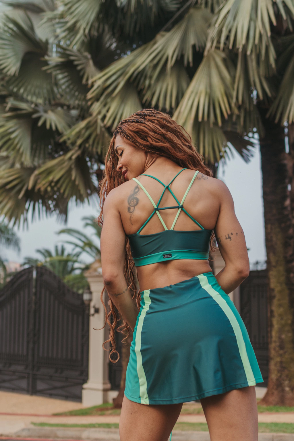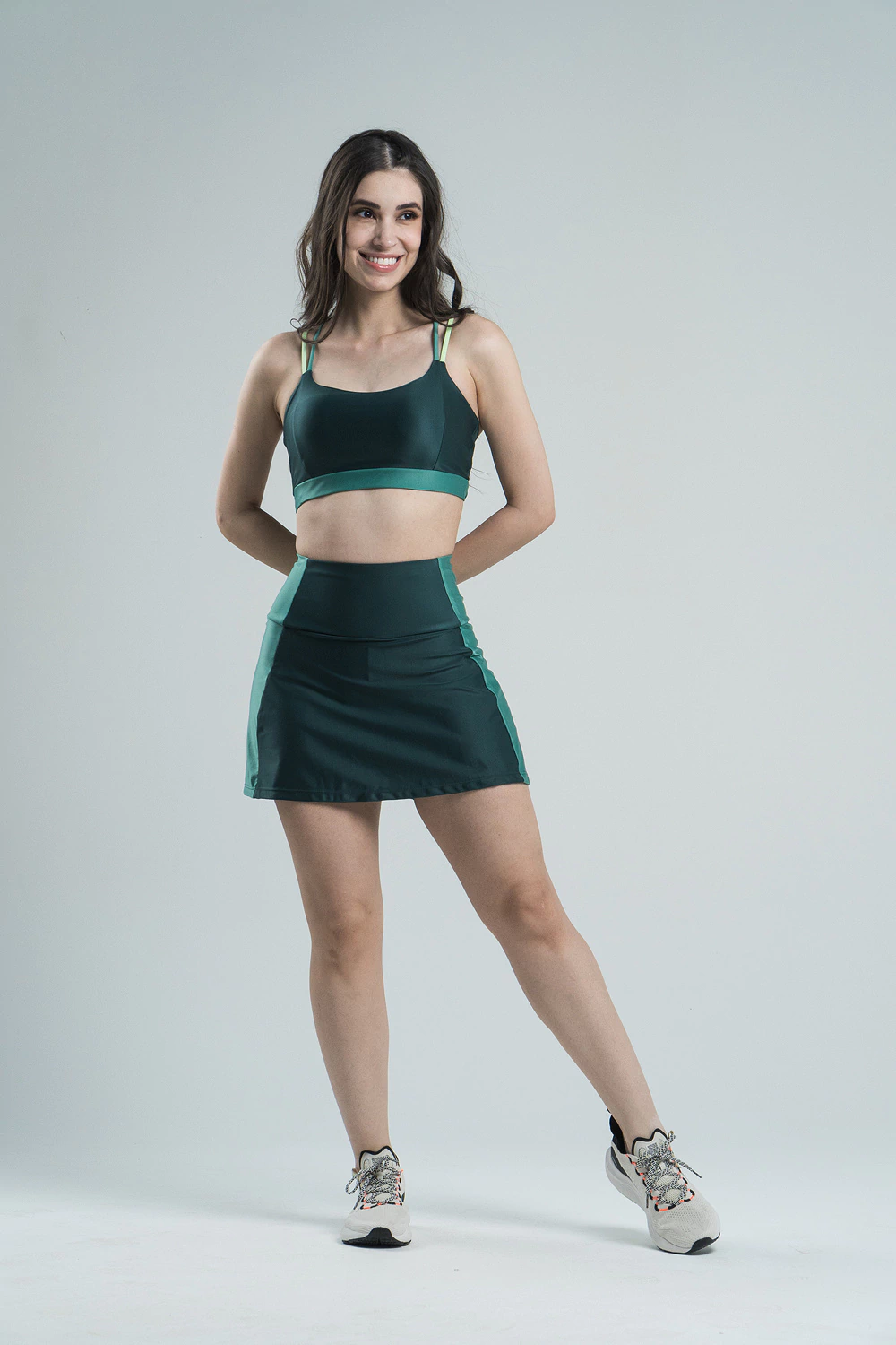 A Saia Shorts Athletic é a escolha perfeita para quem busca estilo, conforto e praticidade nos treinos. Com cós alto duplo e elástico fino de segurança, essa saia shorts oferece compressão na medida certa na região do abdômen, garantindo um ajuste confortável e modelado. Seu recorte longitudinal na frente, que começa abaixo do cós e desce até a barra, alonga a silhueta, criando uma aparência mais esguia. Nas costas, o recorte que vai do cós até a barra proporciona um caimento perfeito e favorece a modelagem do corpo. A modelagem solta ao corpo, com shorts justo por baixo, garante liberdade de movimento, enquanto o bolso discreto de um lado oferece praticidade, sendo ideal para guardar o celular durante o treino. Confeccionada no tecido Power Sport, a saia shorts não marca celulite, não é transparente e proporciona total conforto e resistência. O tecido possui um leve brilho acetinado deixando a peça elegante e sofisticada.