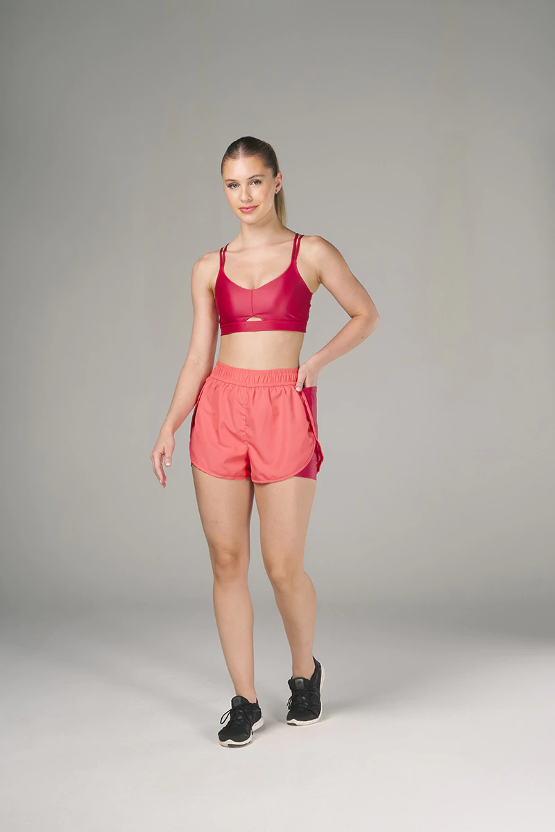 Sua modelagem inteligente traz dois shorts em um: o de baixo é justo e estruturado, com bolso funcional perfeito para o celular, além da barra dupla que evita que suba durante os movimentos. O de cima, mais solto ao corpo, tem um recorte transpassado que garante leveza, liberdade e muito mais estilo. E sim, ele também tem bolso lateral, porque praticidade nunca é demais.