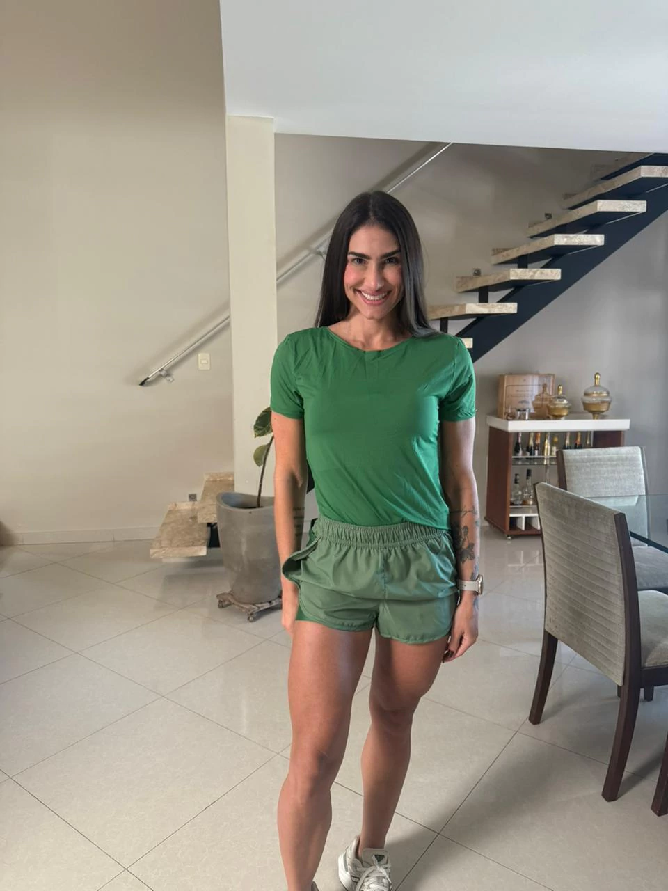 A combinação dos tecidos faz toda a diferença: o Nylon com toque macio oferece conforto o dia inteiro, enquanto o Power Sport no short interno traz a segurança de um tecido que não marca celulite e não fica transparente — porque se sentir bem importa tanto quanto se sentir bonita.