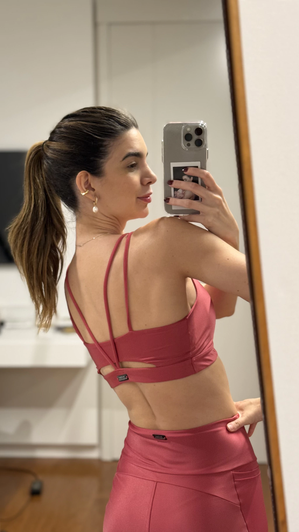 Feito com tecido duplo e bojo removível, ele te dá liberdade para escolher como usar, sem medo de transparência. O elástico de 3cm na base garante firmeza e evita que o top se mova, mesmo nas práticas mais dinâmicas.