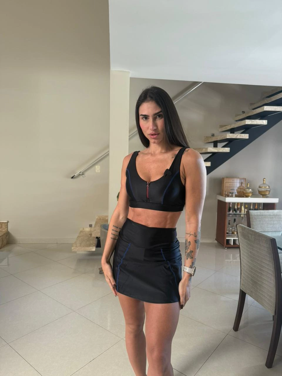 O decote arredondado com zíper frontal traz um toque moderno e funcional, enquanto as costas abertas com faixa central adicionam leveza e respirabilidade, além de um visual cheio de personalidade.